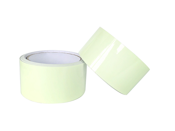 Glow-In-Dark Tape is a flexible polyester laminated photo luminescent film coated with a permanent acrylic pressure-sensitive adhesive and backed with a 5 mil poly coated paper release liner.