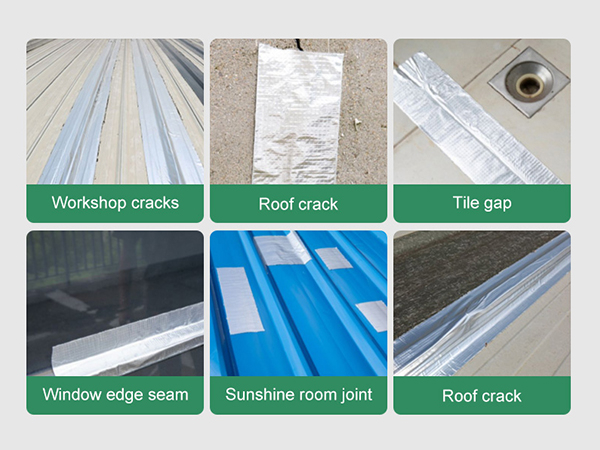 6. Butyl tape with composite aluminum foil is suitable for waterproof sealing of various civil roofs, color steel, steel structures, waterproof membranes, PC boards, etc. under sunlight.